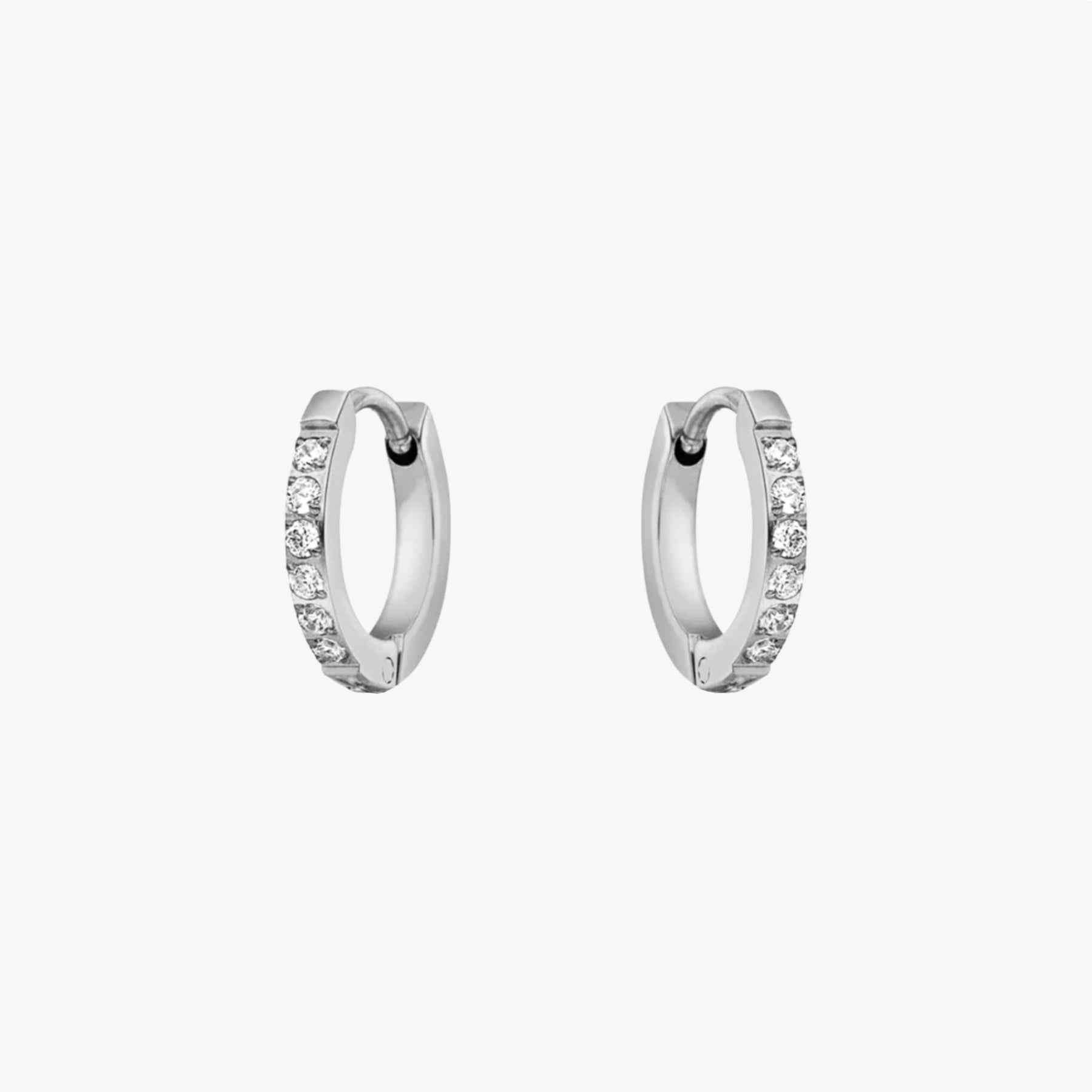 Tiny Gold Earrings by Sandstone, crafted in polished 18k yellow gold, featuring sparkling high-quality zirconia for a touch of elegance.