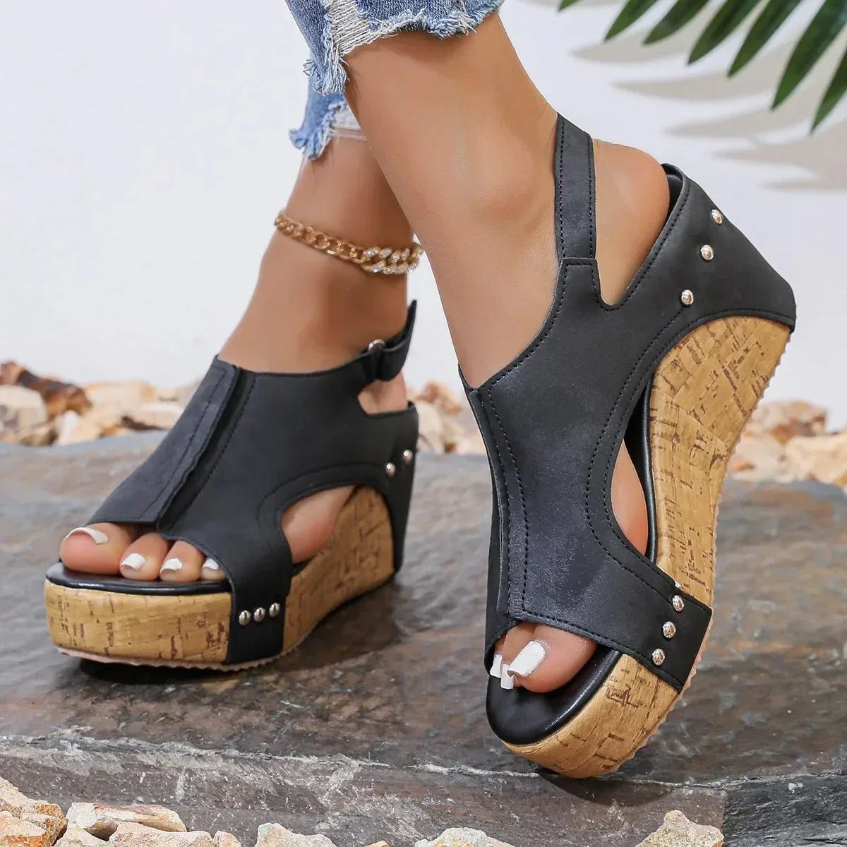 Sandales compensées orthopédiques pour femmes avec soutien rembourré toute la journée