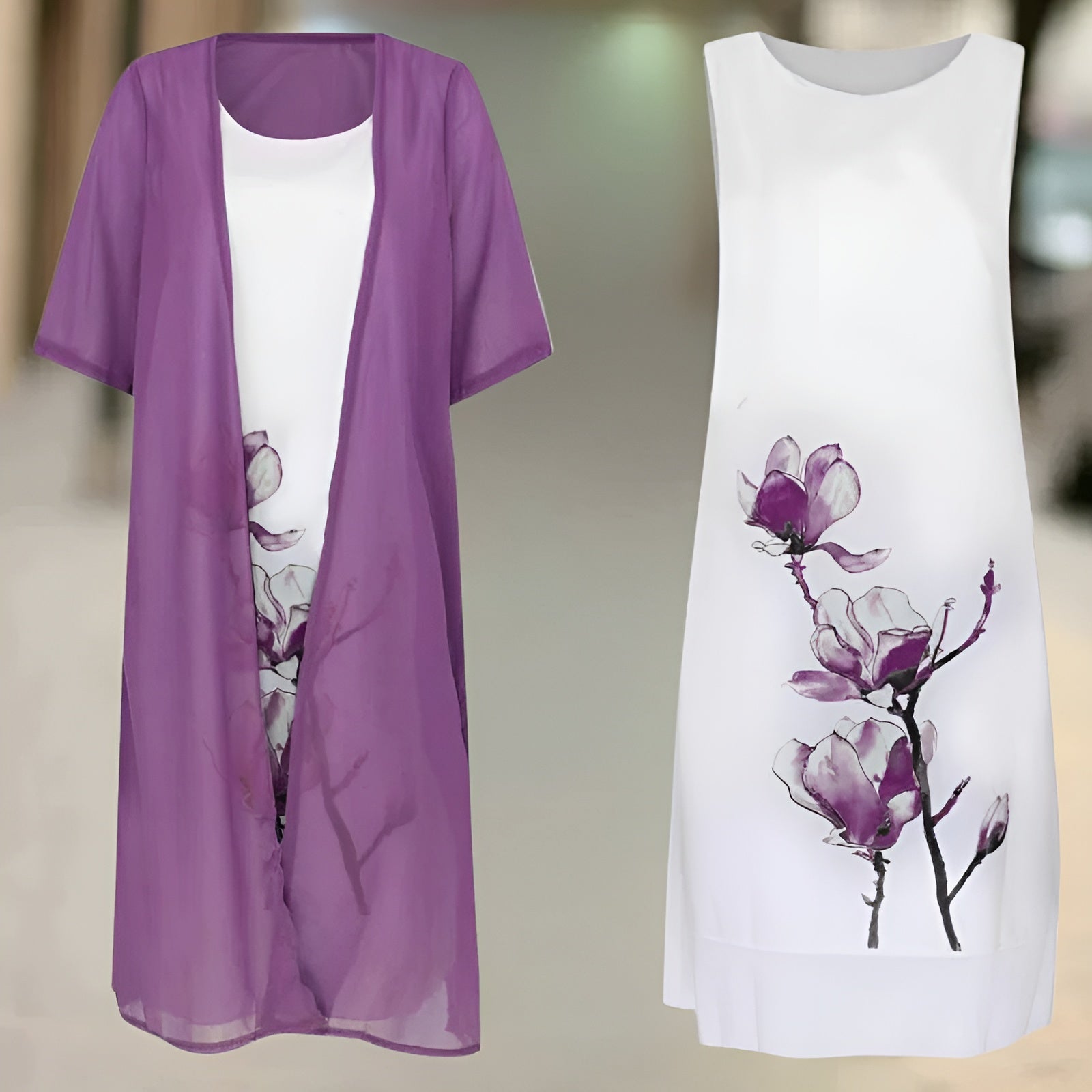 Flowing Dress for kvinner med cardigan Cotton Floral Summer Fit